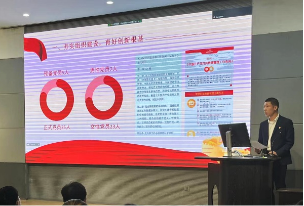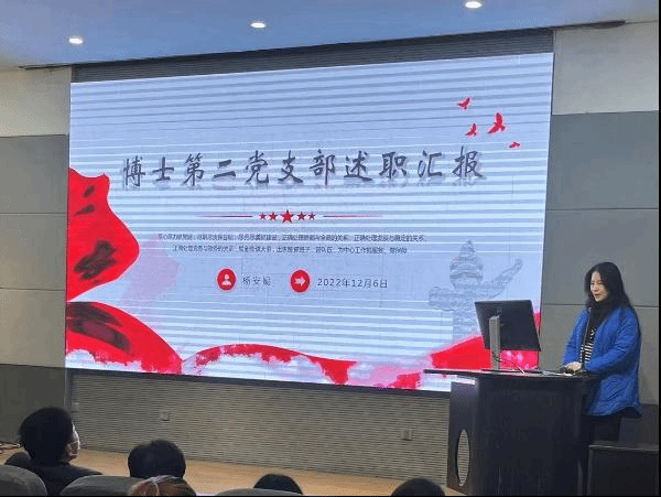一楼报告厅进行现场述职,东氿校区在知行楼C202进行现场述职,会前各支部分别提交了支部手册和述职报告,全体老师根据各支部述职情况及材料进行评审打分。
