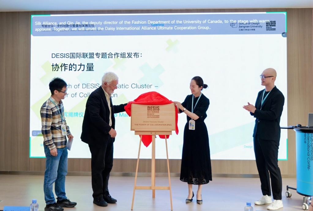 巩淼森副教授对项目作了介绍,秦洁副处长与DESIS联盟发起人兼主席Ezio Manzini教授共同为合作组揭牌。