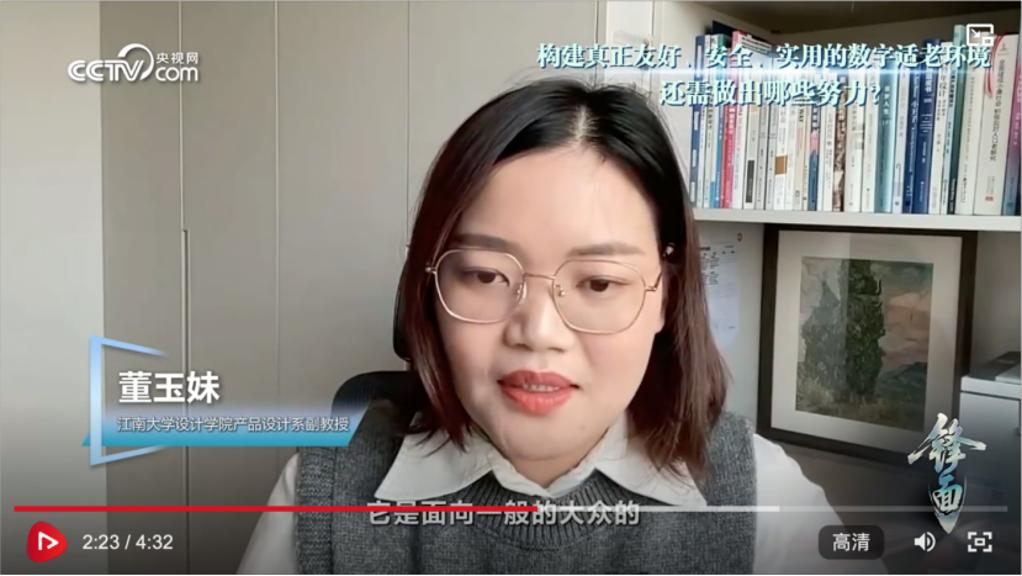 近日,央视网以《被“长辈模式”困住的长辈》为题,对移动互联网应用和其他数字化产品适老化改造存在的问题进行了深度调查。我院产品设计系董玉妹副教授作为适老化设计专家接受央视网的采访,分享了其对适老化改造的现状观察与设计建议。